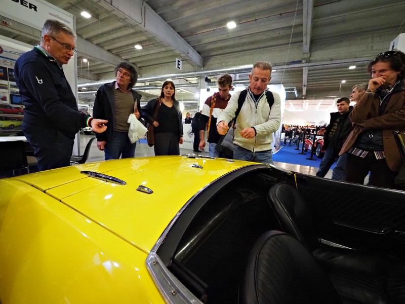 Lo stand del Club predisposto dal nostro Davide Sargentini, allestito con la presenza della Fiat «850 Spider» gialla di Marco Chiari è stato al centro delle attenzioni di visitatori, appassionati ed addetti del settore. Non è mancata neanche una ripresa di RAI News con l’intervista al nostro Marco. E’ stata anche l’occasione per incontrare i tanti “equipaggi” del Club provenienti da diverse parti d’Italia e i tanti amici che sono venuti a trovarci.