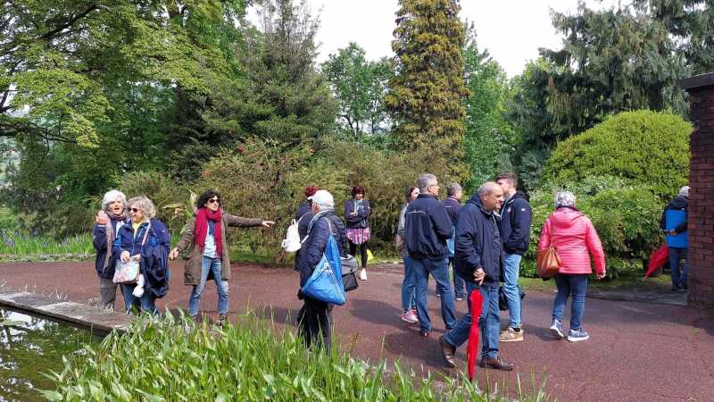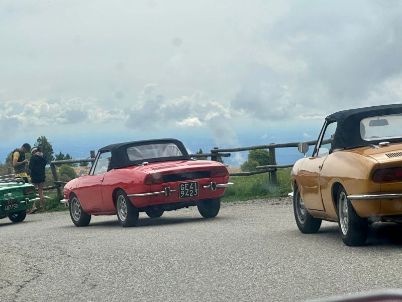 E alla fine il tanto apprezzato telino parasole, omaggio del Club per il 2023, è rimasto nella custodia! Un vero peccato… infatti il maltempo ha flagellato senza pietà buona parte del raduno che, nonostante il programma prevedesse molte locations esterne poco compatibili con la situazione meteorologica, è comunque risultato piacevole per la ricchezza dei suoi contenuti. La base della manifestazione era presso l’Hotel Monterosa di Ameno: la scelta si è rivelata davvero azzeccata in quanto il IMG-20230513-WA0055soggiorno si è svolto nel migliore dei modi; l’hotel si trova infatti in una zona molto tranquilla, dispone di ampi spazi per le auto e ci ha coccolato con una cucina a km zero di livello eccellente ed un servizio cortese e professionale. Complimenti a tutto lo staff. Come dicevamo in apertura, il bilancio è nettamente positivo e la presenza è stata variegata come non capitava da anni: ad esempio abbiamo contato la presenza di ben quattro rare Racer Berlinetta affiancate alla ancor più rara Racer Team di Vittorio Borghesi; oppure, come qualcuno ha fatto notare, non era mai capitato che nello stesso raduno si contassero auto con ben cinque diverse tonalità di giallo: è vero che è sempre il rosso a farla da padrone ma stavolta il giallo si è difeso bene, risultando uno dei colori più gettonati. Ma soprattutto ai nostri raduni si vedono sempre più facce nuove; e questo è il migliore indicatore della situazione. Via libera quindi al debutto di Martina e Lorenzo Contucci da Alessandria, Gianni e Benedetta Passalacqua daIMG-20230513-WA0072 Varese e alle veloci ma significative presenze di Luigi Perin da Vittorio Veneto e Piero Contento di Villadossola. Le previsioni del tempo, a dir poco tragiche, trovavano conferma già nella giornata di giovedì quando era prevista una passeggiata tra le cappelle del Sacro Monte di Orta e la successiva discesa al centro del paese. Il Sacro Monte, patrimonio Unesco, raccoglie venti cappelle dedicate a San Francesco edificate tra la fine del ‘500 e l’inizio del ‘700. La pioggia battente ha costretto a velocizzare la visita dopo la quale buona parte dei partecipanti ha raggiunto la piazza di Orta sul lungolago. Qualcuno ha anche preso il battello per un salto sull’isola di San Giulio prima di rientrare in albergo dove nel frattempo erano arrivati IMG-20230513-WA0120altri amici: alla fine conteremo la presenza di trentatré equipaggi. Dopo la cena, caratterizzata dal consueto clima amichevole e gioioso, si è tenuta la presentazione del programma dei giorni successivi. E la mattina dopo il risveglio non è stato il massimo: la temperatura si era ulteriormente abbassata, la pioggia cadeva a scrosci e, come se questo non fosse sufficiente, un’insidiosa coltre di nebbia avvolgeva le montagne circostanti. A questo punto gli organizzatori, sebbene a malincuore, decidevano di sopprimere la tappa prevista al Santuario di Madonna del Sasso; questo in quanto la strada è particolarmente impegnativa ma soprattutto perché l’attrazione principale, dato il posizionamento sopra un alto sperone roccioso, è il magnifico panorama sul lago d’Orta che sarebbe risultato invisibile. Si è quindi deciso di dirigersi direttamente verso la seconda tappa, anche perché la forte pioggia avrebbe comunque allungato i tempi di trasferimento. Costeggiando la sponda occidentale del Lago d’Orta abbiamo quindi puntato verso Nord superando Pella, Nonio e Omegna per giungere infine in località Crusinallo presso la sede dell’Alessi, azienda leader IMG-20230514-WA0122mondiale nel settore dei casalinghi di design. Qui abbiamo trovato Francesca che ci ha magistralmente illustrato la storia dell’azienda, la sua evoluzione e la produzione attuale; dopo avere ammirato lo show room contenente tutta la produzione attuale (ma anche alcuni cimeli storici) il gruppo è stato suddiviso in due per questioni logistiche e mentre uno si dirigeva all’outlet (dove peraltro era in corso una promozione straordinaria di cui molti hanno approfittato) l’altro visitava il museo con la relativa collezione di prototipi. Non capita tutti i giorni di avere accesso ad una realtà così interessante e il maggior tempo a disposizione per la cancellazione della prima tappa è stato universalmente apprezzato. Alla fine della visita il serpentone delle Spider ha ripreso la direzione dell’hotel costeggiando stavolta la sponda orientale del lago d’Orta e il gruppo, una volta giunto in sala ristorante, ha fatto la conoscenza del Tapelucco alla Borgomanerese, un piatto unico tipico della zona, composto da carne stufata, gorgonzola e una particolare polenta che ha riscaldato anche i più infreddoliti ricaricandoli in vista di un pomeriggio in cui la pioggia concedeva una breve tregua; così siamo ripartiti in direzione di Stresa, la perla del lago Maggiore, dove era stato IMG-20230514-WA0040predisposto un parcheggio riservato a quattro passi dal lungolago. Il tempo di trasferirsi all’imbarcadero e salpare con destinazione Isola Bella e la pioggia ha ripreso a cadere incessante rovinando l’escursione e costringendo i partecipanti a cercare riparo. Il sabato, sebbene partito ancora una volta all’insegna del maltempo, si rivelerà più clemente. Siamo partiti di buon mattino in direzione di Verbania per raggiungere i magnifici giardini di Villa Taranto, dove le spider hanno fruito di un parcheggio riservato all’ingresso della villa, suscitando l’ammirazione degli altri visitatori, molti dei quali stranieri. Il parco, costituito da giardini abbelliti da terrazze, vasche, fontane e cascatelle, è ricco di fiori e di piante secolari, alcune delle quali esotiche e molto rare. Dopo circa un’ora la pioggia finalmente si è fermata, cosa che ha consentito di godere appieno della bellezza dei giardini fino all’approssimarsi dell’ora di pranzo. Siamo quindi ripartiti in direzione di Casale Corte Cerro dove ci aspettava il ristorante “Da Cicin” con la sua cucina tipica. Du