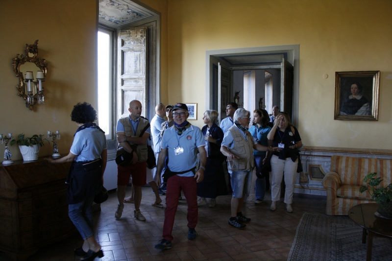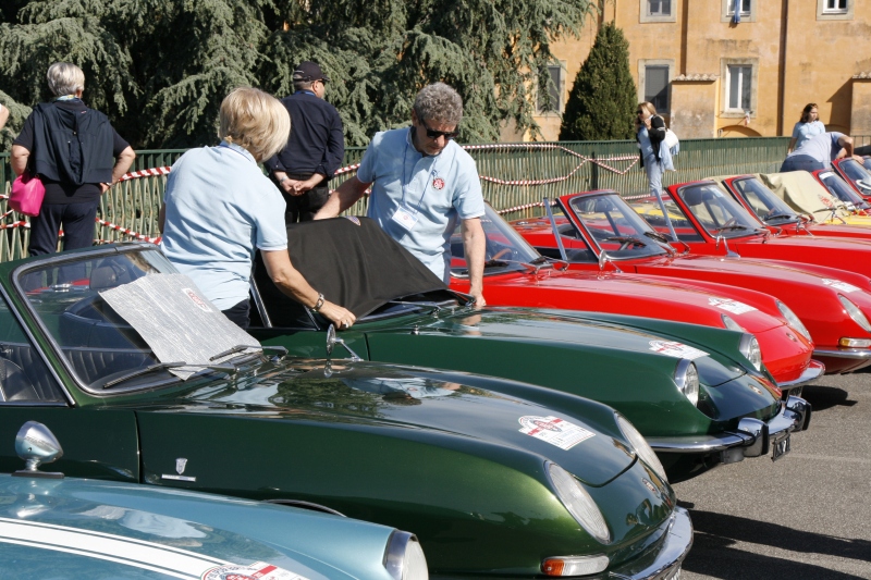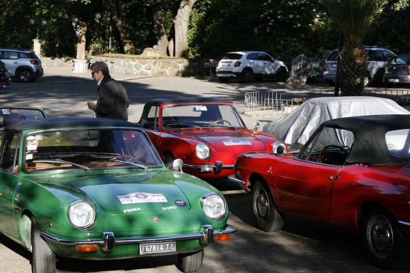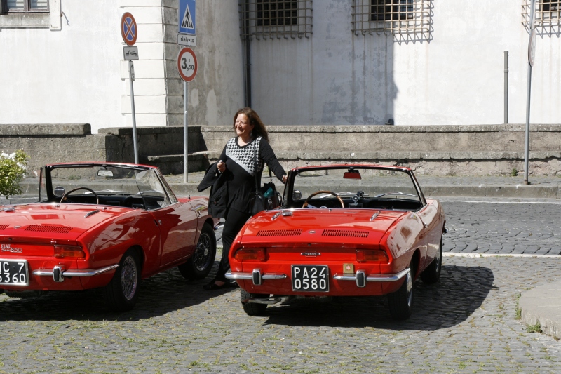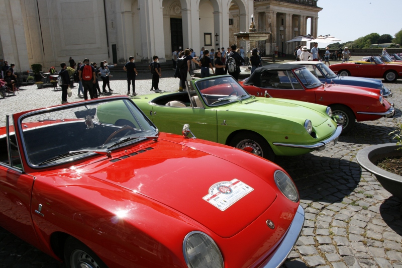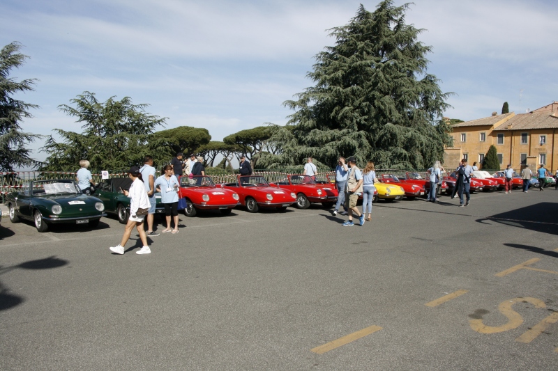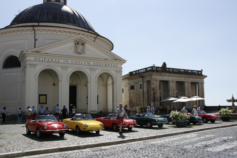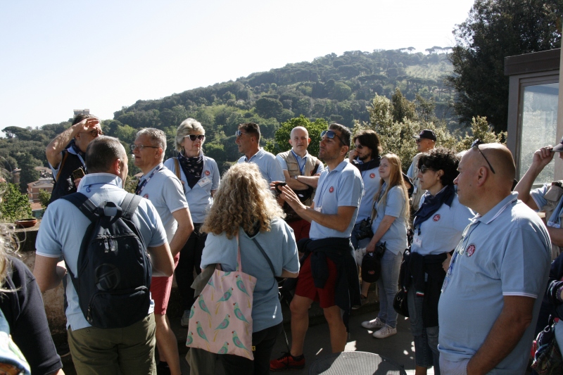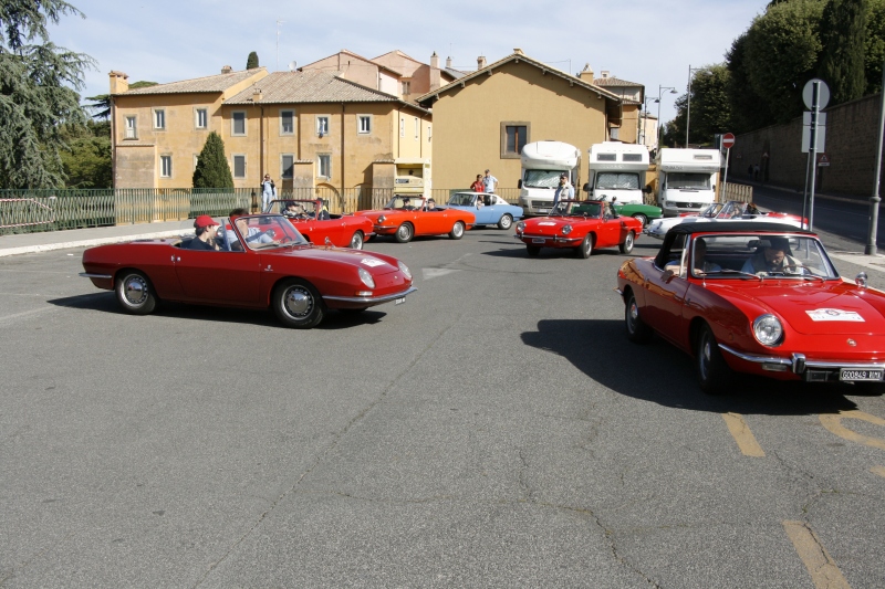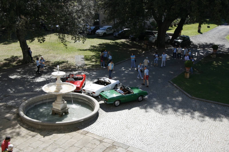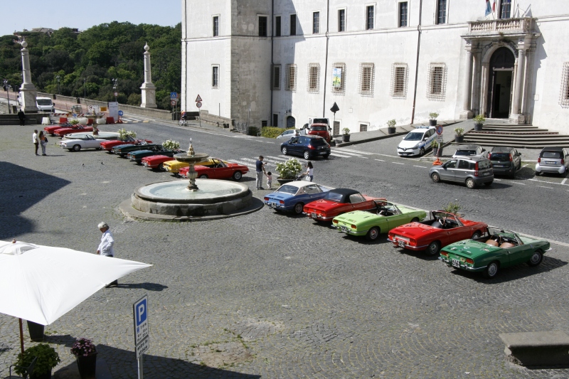 L’arrivo a Castelgandolfo sulla terrazza belvedere intitolata a Giovanni XXIII , dopo un percorso panoramico con vista lago, ha visto le 850 letteralmente assediate dai tanti turisti; sistemate le vetture il gruppo si è diretto al palazzo Apostolico per la visita di un luogo inaccessibile fino ad una manciata di anni fa. Nel cortile di ingresso, a darci il benvenuto, abbiamo trovato schierate alcune limousine e papamobili utilizzate dai Pontefici anni addietro.