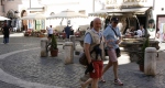Dopo una sosta nei giardini antistanti la villa, siamo risaliti in macchina e ripartiti alla volta della cantina Villa Simone, dove abbiamo ricevuto una interessantissima illustrazione della storia dell’azienda e delle tecniche utilizzate in fase di coltivazione delle viti e produzione del vino. A seguire una piacevole degustazione delle etichette più rappresentative che ha preceduto il rientro in Hotel per il pranzo, passando nella piccola Monteporzio Catone. Lasciato l’Hotel alle 15 ci siamo avviati in direzione sud ovest, percorrendo in senso antiorario le strade che attraversano Grottaferrata, Marino, Castel Gandolfo, Albano e infine Ariccia, dove abbiamo parcheggiato le auto nella splendida Piazza di Corte, cuore di questo graziosa località famosa per il proprio ponte e per la celebre