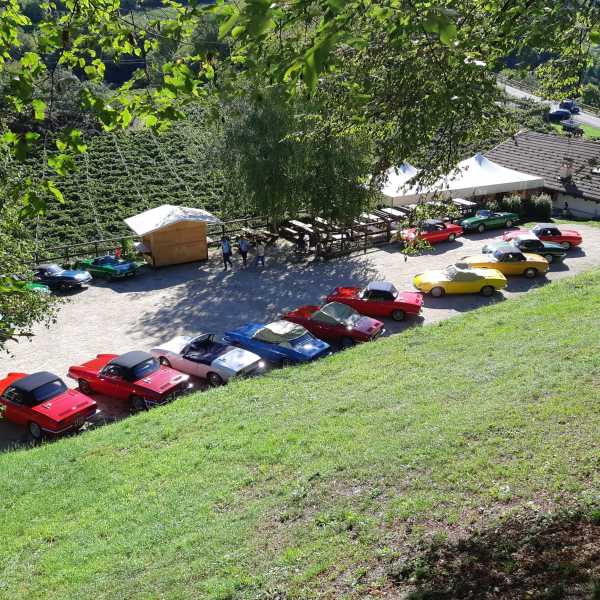 E’ andata! Tutto liscio (o quasi) in barba alle tragiche previsioni meteo che ci avevano fatto temere il peggio: dopo un anno di siccità da record sembrava che si dovesse passare tutto il raduno sotto il diluvio universale! Invece dopo un viaggio sotto la pioggia battente e una Folgaria avvolta dalla nebbia il giovedì mattina, piano piano la situazione è migliorata nel pomeriggio; e anche il venerdì, pur alternando sprazzi di sole a qualche scroscio, il tutto si è mantenuto su livelli discreti; ma è IMG-20220908-WA0028stato il fine settimana che ha premiato la costanza dei partecipanti: aria fresca e frizzante come ci si aspetta oltre i mille metri ma un cielo azzurro che più azzurro non si può sotto ad un sole splendente ma mai invasivo, praticamente il top per uno spiderista. Con una considerazione finale importante: questo evento ha dimostrato che si può ancora fare un bel raduno spendendo il giusto se gli organizzatori hanno la costanza di non arrendersi alle prime difficoltà. Partiamo dall’inizio: addirittura dal mercoledì sera le primissime spider iniziavano a popolare l’ampio garage del Grand Hotel Biancaneve, situato aIMG-20220909-WA0007 Costa, tra il centro di Folgaria ed passo Sommo. Vale la pena spendere due parole per questa struttura: elegante, confortevole e magistralmente condotta si è rivelata un campo base ideale per il nostro ritrovo settembrino. Di sicuro resterà nei ricordi dei partecipanti non soltanto per la sua funzionalità e per la professionalità di tutto lo staff ma anche per la qualità della cucina: lo chef ci ha deliziato per quattro giorni con il meglio della gastronomia trentina. Detto questo passiamo a raccontare la giornata di giovedì quando il parcheggio dell’hotel ha iniziato a popolarsi di spider: facce note certamente ma anche qualche novità: ad esempio la coppia formata da Stefano e Maria Andrea Martini, dalla provincia di Modena, che a bordo della loro seconda serie rossa hanno partecipato per la prima volta e che già sabato, positivamente colpiti dal clima del gruppo e dall’organizzazione del club, hanno manifestato la volontà di IMG-20220909-WA0022iscriversi; oppure degli amici Armin e Beatrice Huerlimann, arrivati dal nord della Svizzera a bordo della loro Sport Spider di colore verde i quali, nonostante le difficoltà dovute alla lingua, si sono splendidamente ambientati, al punto che prima della fine del raduno, non senza fatica, Beatrice ha letto un messaggio di ringraziamento in un italiano un po’ traballante ma allo stesso tempo carico di affetto e gratitudine. E infine il debutto del nostro socio Francesco Luni, arrivato sabato a bordo della spider bianca dei suoi genitori in compagnia di Mila, uno splendido esemplare di bracco italiano che con la sua composta dolcezza ha conquistato tutti. Nel pomeriggio il gruppo, non ancora completo, dopo un suggestivo percorso panoramico all’ombra di Forte Belvedere suggerito dall’amico Ugo Bacchi, ha raggiunto Lavarone per la visita del museo del miele; visita che si è rivelata assai piacevole, grazie anche ad una giovane guida che ha saputo coinvolgere i partecipanti spiegando con entusiasmo e chiarezza tutti i segreti della vita delle api e della produzione del prezioso nettare; all’interno del museo è custodita una vasta collezione di strumenti per apicoltura provenienti da varie parti del mondo. Terminata la visita, ai partecipanti è stata offerta una degustazione di grappa al miele oltre alla possibilità di acquistare i tanti prodotti della casa. Al rientro in hotel, dove nel frattempo erano sopraggiunti ulteriori equipaggi, è seguito un cocktail di benvenuto nella splendida terrazza; successivamente è stata servita la cena cui è seguito un briefingIMG-20220910-WA0037 di presentazione in una saletta riservata. Si passa quindi al venerdì mattina con un cielo che è un invito a tenere le capotes rigorosamente chiuse: il viaggio peraltro è abbastanza lungo per i nostri standard: dobbiamo infatti superare il passo Vezzena per scollinare in terra veneta sull’altopiano di Asiago. Nonostante qualche momento di pioggia il viaggio scorre tranquillo: le strade sono una meraviglia (quantomeno fino a quando si resta in provincia di Trento si viaggia su un biliardo, quando si passa sotto quella di Vicenza le sospensioni ed i fondoschiena dei passeggeri se ne accorgono!), il panorama è fantastico ed il clima fa sì che anche nelle salite più impegnative non vi siano auto con problemi di surriscaldamento. Raggiungiamo quindi la località di Camporovere dove ci aspettano Fabio e Monica per condurci a Tresché Conca e arrivare quindi a Forte Corbin, imponente impianto difensivo, edificato all’inizio del secolo scorso, con vista su tutta la Valdastico. Accolti dalla proprietaria, che ha brevemente presentato la struttura, abbiamo compiuto una visita libera di tutto il complesso; al termine della visita qualcuno si è lasciato tentare da un aperitivo sostanzioso al bar del forte: scelta che si è rivelata poco lungimirante dal momento che da lì a poco ci siamo spostati all’agriturismo Gruuntaal che ci aspettava con un pranzo veramente abbondante e con specialità da leccarsi i baffi! E’ già ora di rimettere in moto le 850: attraversiamo Asiago passando davanti all’ossario e puntiamo verso Canove di Roana per la visita al Museo della Grande Guerra: ospitato in una vecchia stazione ferroviaria raccoglie una quantità incredibile di cimeli militari. Il signor Albertin, profondo IMG-20220909-WA0055conoscitore della storia locale, ci ha guidati durante la visita spiegandoci tutto con racconti davvero toccanti. Al termine della visita, con la collaborazione della Pro Loco, è stato organizzato un buffet prima della ripartenza in direzione di Folgaria. In hotel giungono altri equipaggi, il meteo nel frattempo si è stabilizzato e ormai l’orientamento è chiaro: l’indomani le capotes si apriranno! E infatti, dopo un’altra cena davvero ottima ed una serata div