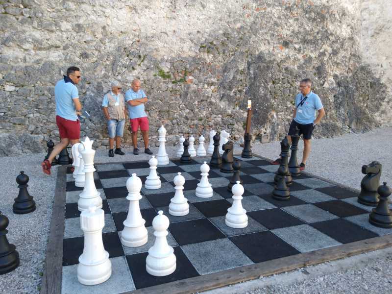IMG-20220911-WA0075A seguire le consuete premiazioni con assegnazione degli abbonamenti gentilmente offerti dal nostro storico sponsor epocauto e con consegna dell’omaggio consistente in una sacca impermeabile contenente un trancio di speck selezionato dalla rinomata macelleria Cappelletti, una marmellata della Val di Gresta e qualche gadget gentilmente offerto dalla Cassa Rurale Vallagarina grazie all’interessamento dell’amico Ugo Bacchi. Dopo questo passaggio, abbandoniamo la nostra saletta meeting per salire al piano superiore dove è stata organizzata una serata piano bar con musica dal vivo. L’atmosfera gioiosa tipica dei nostri incontri sembra non risentire del fatto che ormai il raduno stia volgendo al termine: infatti la mattina dopo, stavolta alle 9,15 per recuperare dai bagordi, si sale in macchina e si parte sotto un sole stupendo per l’ultima parte del programma: il giro del Toraro.