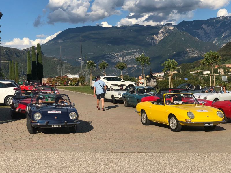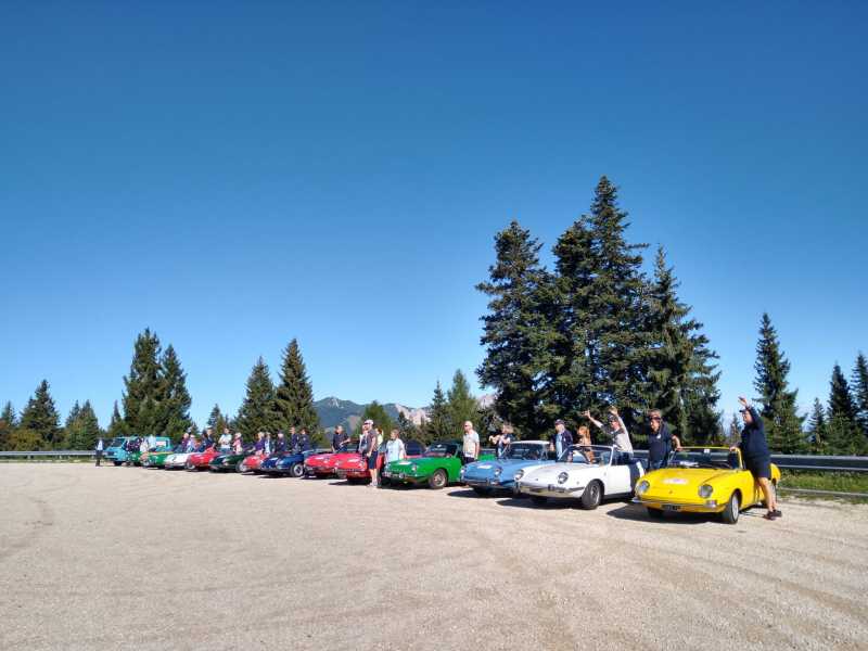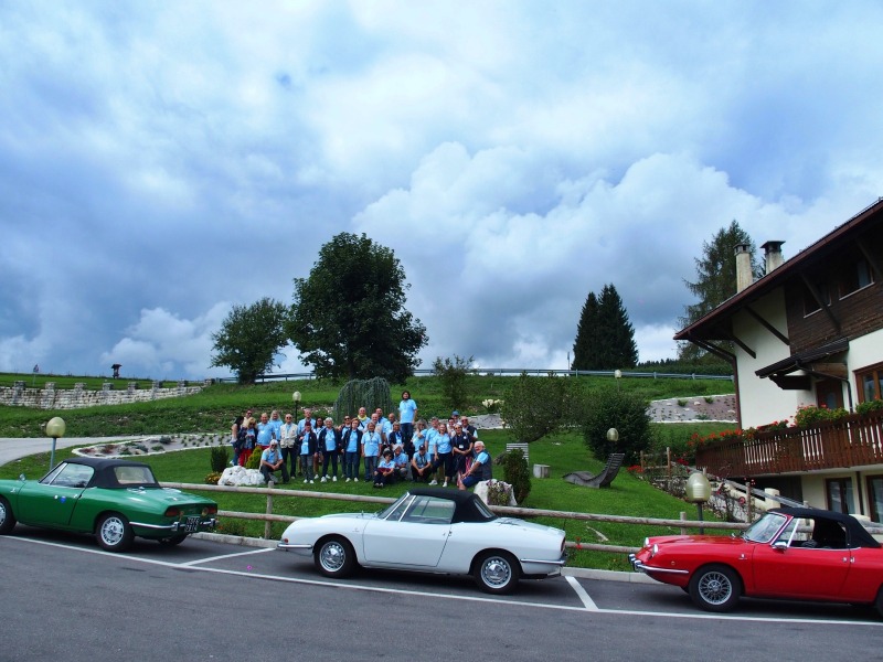 Attraversando ben tre passi (abbiamo sfiorato i 1800 metri di altitudine) abbiamo effettuato un percorso circolare che da passo Sommo si sposta nel vicentino con un magnifico panorama sulle piccole Dolomiti per poi rientrare in terra trentina; durante il tragitto il capofila scorge un ampio parcheggio deserto e opta per una sosta fuori programma; sosta che si rivela un’ottima occasione per scattare foto, inIMG-20220912-WA0027 particolare anche foto dinamiche sotto la direzione di uno scatenatissimo Enzo che sbracciandosi e urlando a più non posso fa posizionare le auto nei modi più fantasiosi! Quando arriviamo a Passo Coe, a due passi dal lago scorgiamo la Base Tuono, oggi museo della guerra fredda, oggetto della nostra visita durante il raduno di Lavarone del 2013. Arrivati a Fondo Grande facciamo tappa al bar “Dal Baffo” per un aperitivo in terrazza sotto un sole spettacolare: il titolare ci accoglie calorosamente, rivelandosi un vero e proprio personaggio: si impossessa del nostro megafono e inizia a scherzare rendendo ancora più allegra una sosta di per sé già piacevole. Si avvicina l’ora di pranzo e ripartiamo imboccando la strada per Costa di Folgaria dove ci attende l’ultimo pranzo in albergo: qui lo staff ha ricevuto un meritato applauso da parte dei partecipanti. Terminato il pranzo, inizia il carico dei bagagli, il consueto rito dei saluti con baci e abbracci e l’impegno di ritrovarsi alla prossima occasione. A questo punto entra in scena il gruppo whatsapp dove tutti aggiornano sul percorso e sull’arrivo alle rispettive abitazioni: nota di merito particolare per gli eroici equipaggi laziali che nonostante il lungo viaggio non hanno esitato a fermarsi per aiutare Paride nella sostituzione di una ruota; è ormai mezzanotte quando a Roma l’ultima 850 si infila in garage mentre dalla chat arriva la buonanotte; e a quel punto sul raduno di Folgaria cala definitivamente il sipario!