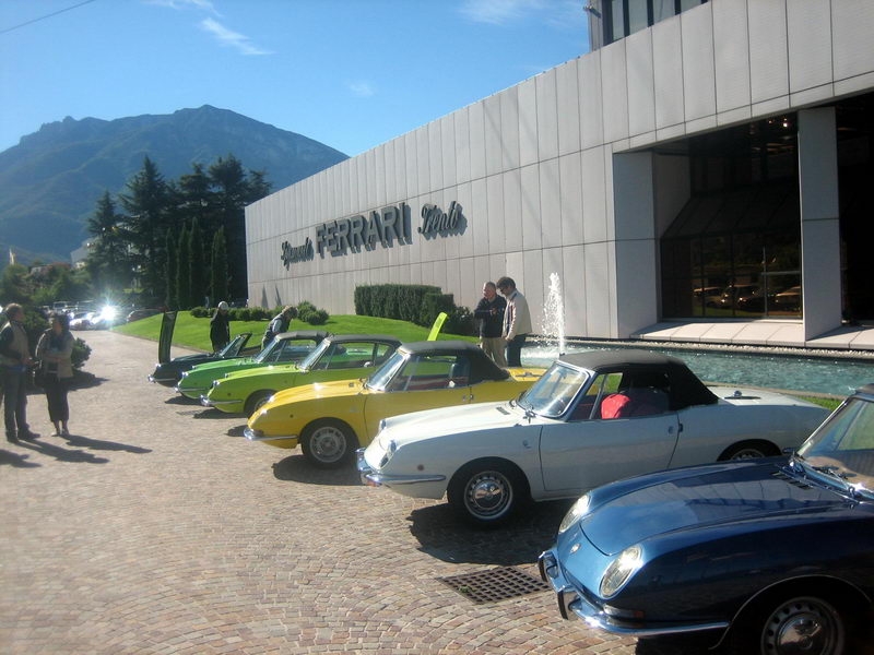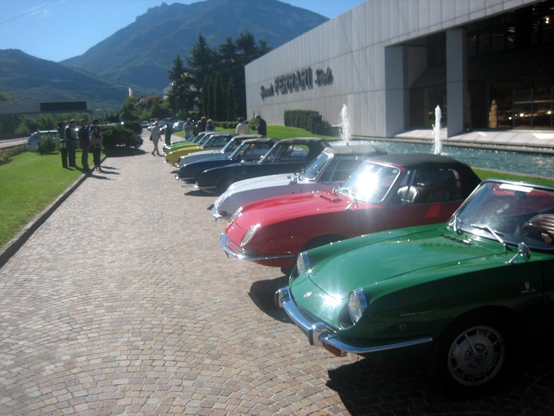 Siamo quindi al venerdì mattina quando ci siamo risvegliati con una temperatura a dir poco pungente: sette gradi che sconsigliavano di aprire la capote; confidando in un miglioramento della situazione non appena il sole avesse cominciato a fare il proprio dovere, cosa puntualmente avvenuta nel giro di poco, il colorato serpentone di vetture ha lasciato l’altopiano per puntare verso il capoluogo percorrendo la strada 349, un tracciato panoramico ricco di curve; obiettivo della prima sosta era una delle case spumantistiche più celebri d’Italia: la Ferrari di Trento.