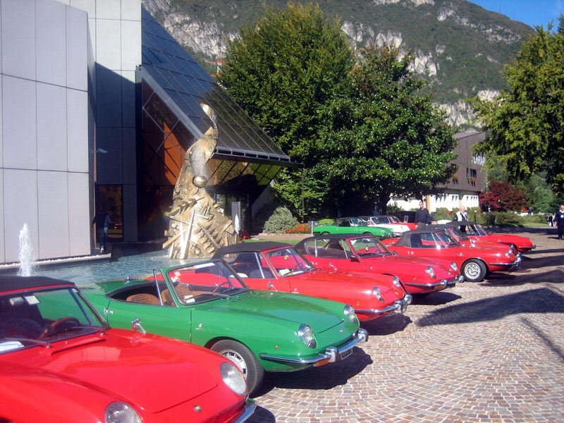 Peraltro, abbiamo avuto il privilegio di visitare gli impianti in occasione della pigiatura, evento davvero fortunato. Nicoletta Negri ha curato l’accoglienza e, dopo averci illustrato la storia dell’azienda, ci ha condotto in un tour all’interno della struttura: zone di pigiatura, cantine d’invecchiamento, linea di imbottigliamento e quant’altro, per poi terminare con una degustazione di alcuni prodotti della Casa e successiva sosta all’outlet aziendale per gli acquisti; bello anche l’impatto esterno, ai bordi dell’A22 del Brennero: la struttura ha un design di prim’ordine, guarnito da prati all’inglese, fontane e sculture di artisti famosi del calibro di Giò Pomodoro. Foto di rito, con tanto di parata di vetture in livrea tricolore di fronte all’ingresso. Dopo il pranzo in un tipico locale della zona, abbiamo raggiunto il Museo Caproni, alla periferia di Trento, tempio dell’aviazione italiana; parecchi i velivoli in mostra che un’esperta guida ha descritto nei minimi particolari; abbiamo tutti ammirato questi aeromobili (alcuni dei quali ormai centenari) per poi divertirci come bambini sui numerosi simulatori di volo: il museo è infatti dotato di numerose postazioni interattive che consentono di sperimentare il pilotaggio di diversi tipi di velivoli. In sintesi una sosta davvero interessante e diversa dal solito che ha riscosso l’apprezzamento di tutta la comitiva.
