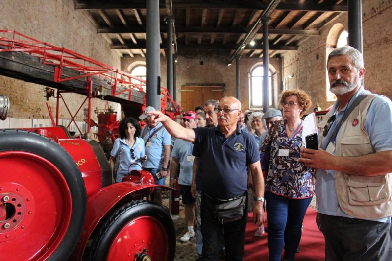 Emilia Romagna, Piemonte, Lombardia, Veneto, Toscana, Marche e Lazio le regioni di provenienza dei partecipanti, che hanno sistemato le vetture nel parcheggio riservato nel cortile delle scuderie di Castel San Giorgio. All’interno delle scuderie si trova l’interessantissimo Museo dei Vigili del Fuoco, dove sono esposti mezzi e attrezzature di ogni tipo, da quelli primordiali fino ad altri dismessi negli anni ’80; durante il percorso siamo stati accompagnati dalle guide del museo: si tratta di volontari, quasi sempre pompieri in pensione ma non manca qualche collega ancora in servizio, che hanno illustrato in modo interessantissimo la storia del corpo e l’evoluzione delle attrezzature.