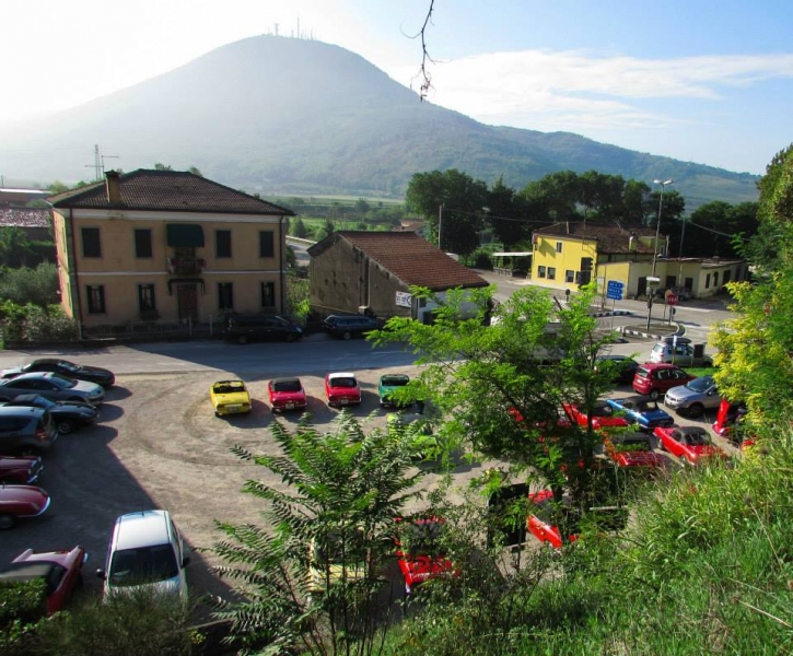 La sede di questa “quattro giorni” è stata presso l’hotel Antoniano Terme di Montegrotto, impeccabilmente diretto dalla signora Maria Rosa: un albergo elegante e funzionale dotato di ampi spazi e di una cucina davvero di classe che ha soddisfatto anche i palati più esigenti; un plauso particolare anche al personale di sala, caratterizzato da professionalità, efficienza e simpatia. Il via è stato dato nel pomeriggio di giovedì 11 quando il cortile dell’Antoniano ha cominciato a popolarsi di variopinte 850. Purtroppo nel volgere di qualche ora il sole del mattino ha lasciato il posto ad una forte pioggia che ha costretto gli organizzatori ad un cambio in corsa: infatti la prevista visita ai giardini di Villa Barbarigo a Valsanzibio non ha potuto svolgersi e così si è deciso di puntare verso Abano Terme per una passeggiata nell’elegante centro ed un classico aperitivo a seguito del quale qualche signora è ritornata alla macchina con il passo un po incerto! Nel frattempo l’albergo si popolava sempre più di partecipanti e dopo cena, in una sala appositamente riservata al nostro gruppo, gli organizzatori illustravano ai presenti il programma del raduno; una novità che è stata particolarmente apprezzata (e che terremo presente per il futuro) è la distribuzione giornaliera della mappa del percorso, che è risultata di più facile consultazione rispetto ad un road book infarcito di note storiche e culturali.