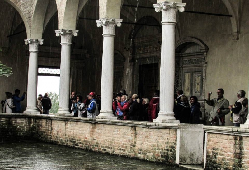 La sveglia del venerdì non è tra le più piacevoli: la pioggia, caduta tutta notte, non ha alcuna intenzione di concedere una tregua e continua sempre più forte: meno male che i luoghi oggetto di visita sono al chiuso, cosa che aiuta non poco a contenere i disagi; così le spiderine arrivano bagnatissime all’abbazia benedettina di Praglia, imponente costruzione risalente all’XI secolo; sotto la guida di Padre Igino abbiamo visitato un edificio davvero splendido; molto particolare il chiostro pensile, sotto al quale si trova un’immensa cisterna per la raccolta dell’acqua piovana ma tutta la visita ha suscitato l’ammirazione dei partecipanti, dal coro alla biblioteca fino alla cantina, teatro di produzione di pregiati vini e, specialmente in tempo di vendemmia, off limits ma non per noi; seguendo la regola “ora et labora”, i monaci producono inoltre miele, tisane e cosmetici; inutile dire che lo spaccio è stato preso d’assalto! Alla fine della visita la comitiva, sempre sotto la pioggia, rientrava in albergo ma il cielo cominciava a mandare “messaggi positivi”; dopo pranzo, di nuovo tutti in macchina per raggiungere la vicina Torreglia, sede delle celebri distillerie Luxardo, il cui maraschino è famoso in ogni angolo