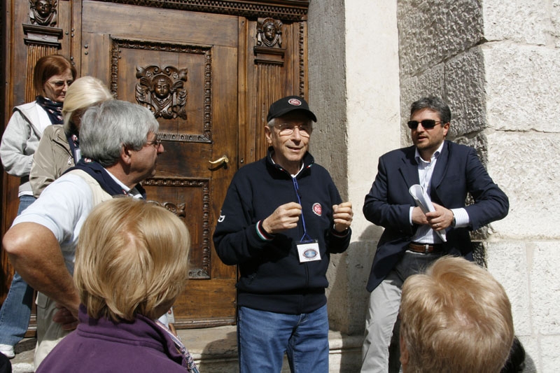 Il venerdì mattina, con precisione svizzera, il corteo di spider lasciava l’albergo alle 8,30 per dirigersi nella vicina cittadina di Arco; questa località, ai tempi della dominazione austroungarica, era particolarmente apprezzata come zona di soggiorno e cura per via del suo clima invidiabile: nel piacevole centro storico del paese spiccano la Chiesa Collegiata, il Casinò Municipale ed il Parco Arciducale caratterizzato dalla presenza di specie arboree provenienti da varie parti del mondo; sopra al borgo, con un’arrampicata di una ventina di minuti in cui pochi coraggiosi si sono cimentati, si trovano le rovine del castello e del borgo fortificato, da cui si ammira un panorama splendido da un lato sulle vallate, dall’altro sul lago. La sosta è terminata con un aperitivo davanti al casinò di cui abbiamo anche visitato il salone principale. Rapido rientro in albergo per il pranzo poi di nuovo a bordo delle nostre spider per raggiungere il lago di Ledro, un incantevole bacino lungo circa 2,8 km e largo 770 metri le cui rive erano abitate sin dall’età del bronzo: nel 1929, con l’apertura di una centrale elettrica, venne abbassato il livello delle acque ed emersero i resti di un villaggio costruito su palafitte cui è dedicato un piccolo museo che abbiamo visitato; dopo la sosta siamo ripartiti percorrendo l’intero perimetro del lago fino a Pieve di Ledro con un piccolo break in un locale in stile sudtirolese. Da notare che una parte del percorso prevedeva lunghe gallerie all’interno delle quali ci siamo divertiti facendo cantare a dismisura i clacson delle vetture: un frastuono infernale che dava però l’idea dell’allegria che regnava fra i partecipanti. Serata di gala in albergo e per la prima volta abbiamo visto il presidente commosso: nonostante un sorriso smagliante, gli occhi un po lucidi lasciavano trasparire la sua emozione: probabilmente in pochi istanti