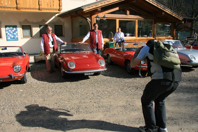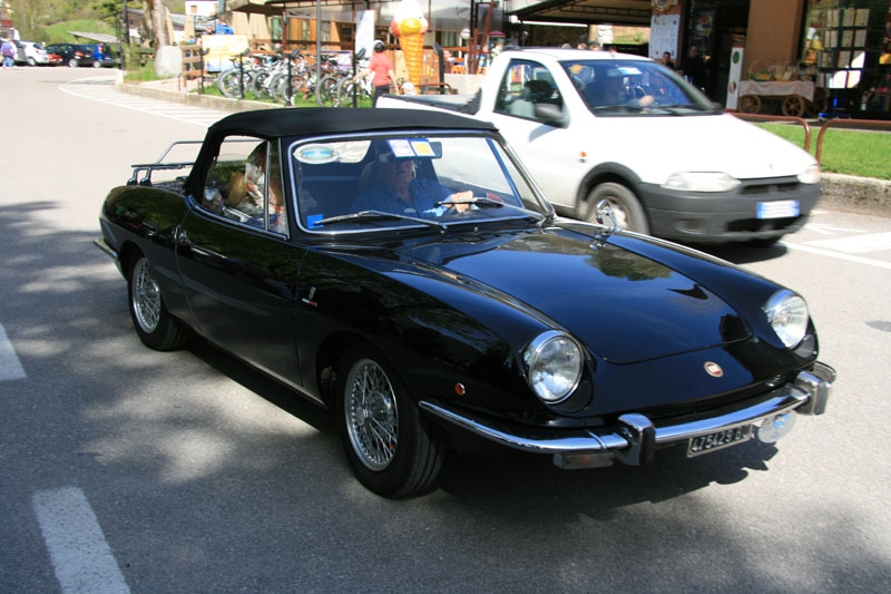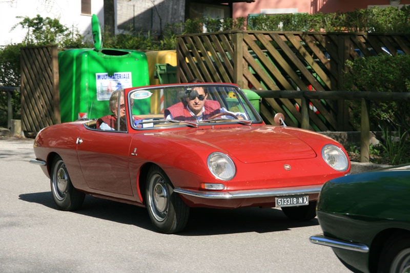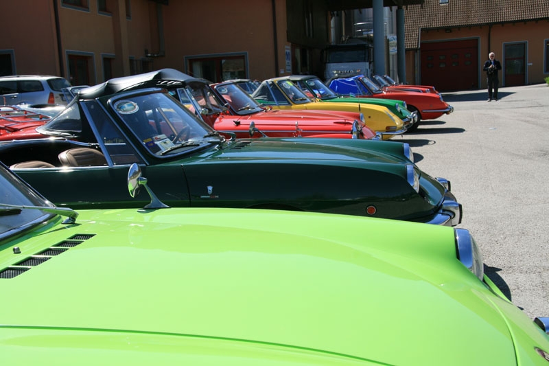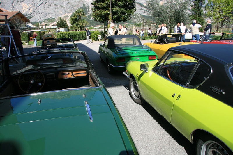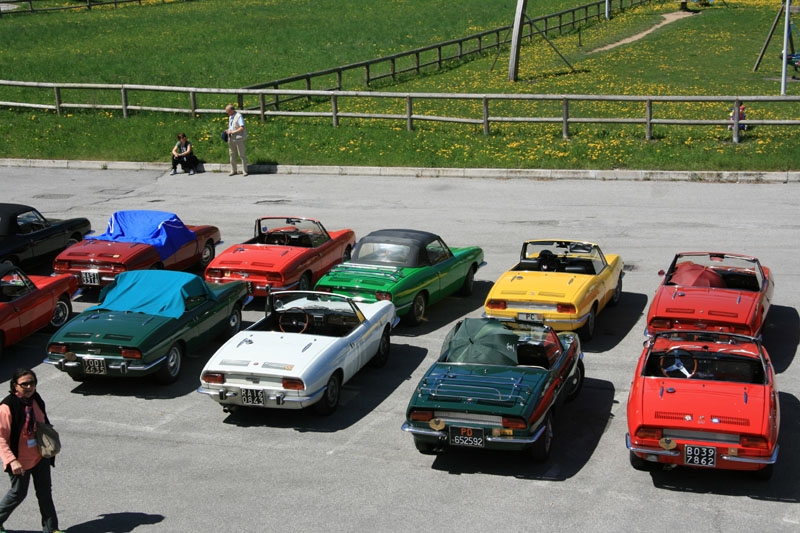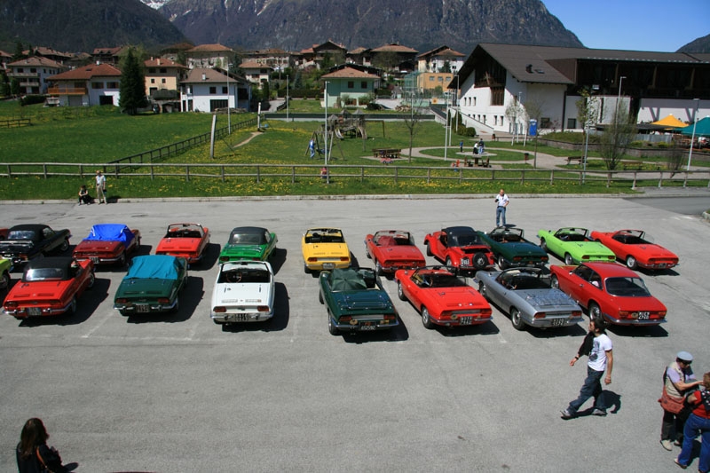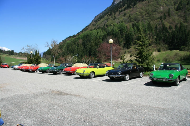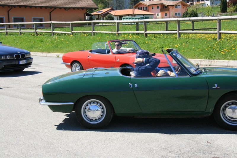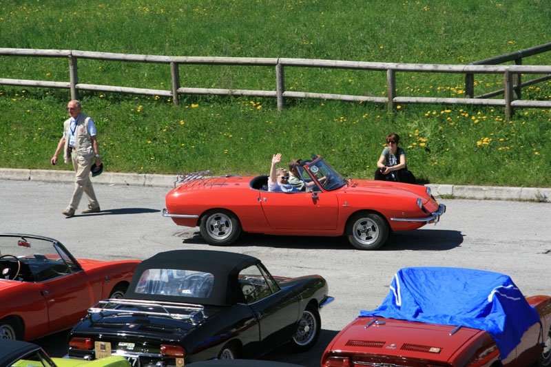 Il meteo ha voluto darci una mano per consentirci di festeggiare il nostro anniversario nelle migliori condizioni: quindi, sotto il sole ed uno splendido cielo azzurro, le verdi vallate trentine, costeggiate da cime ancora bianche di neve, sono state solcate dal variopinto serpentone di auto partecipanti che ha raggiunto la ragguardevole cifra di 37 equipaggi: in verità non tutte erano 850 spider: vi erano infatti tre auto moderne a cui si aggiungevano un’Alfa Romeo, una Siata, una 128 ed un paio di Barchetta; il resto era una lunga e colorata scia di spider con qualche debuttante ed alcuni graditi ritorni: per la prima volta si è avvicinato al Club il veneto Fabio Mazzari con la sua seconda serie rossa mentre, parlando di soci, a Riva del Garda c’è stato il debutto ufficiale del milanese Calogero Latino che, in compagnia del nipote Michele, si è presentato a bordo di una seconda serie bianca alquanto elaborata nella carrozzeria e negli interni; per quanto riguarda i graditi ritorni ci riferiamo ai due equipaggi romani che da tempo non presenziavano alle nostre manifestazioni: Alessandro Benedini e papà su CL bordeaux, assenti dal 2003, ed i coniugi Alfredo e Carmela Anzini su “sport spider” nella classica livrea rossa; è stato però l’esordio anche per la nuova seconda serie di Davide Sargentini che, dopo avere sospeso il restauro della propria rossa Racer Convertibile, si è presentato a bordo di un magnifico esemplare di colore verde chiaro con interni rossi che ha suscitato il plauso dei partecipanti; presenti anche due equipaggi toscani e due marchigiani oltre ai soliti habitué “nordici”; i palermitani Gaetano e Piera Tarantino, che di solito si assicurano di diritto la qualifica di equipaggio proveniente da più lontano, per il secondo anno consecutivo si sono visti scippare il titolo da Chizuko Uchida, arrivata dal Giappone per festeggiare con noi il nostro ventesimo compleanno: e parlando di stranieri, citiamo anche una coppia di tedeschi che si sono aggregati a noi per una giornata: della loro spider, con qualche piccola licenza che i germanici spesso si concedono, abbiamo tutti invidiato la targa “FI 850”: infatti la legislazione locale permette di personalizzarla, cosa che da noi non è possibile… peccato! A chi non piacerebbe sfoggiare il numero 850 sulla targa della propria auto??? Un plauso anche a due coppie di soci: Ugo e Gianna Bacchi che, non potendo essere presenti per motivi familiari, hanno fatto una volata (da Firenze) domenica per presenziare almeno al pranzo finale e Carlo e Paola Longobardi che avevano già prenotato un viaggio in Egitto che hanno disdetto perché volevano a partecipare assolutamente al nostro incontro. E un bravo anche alle nostre