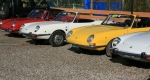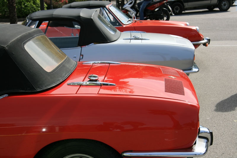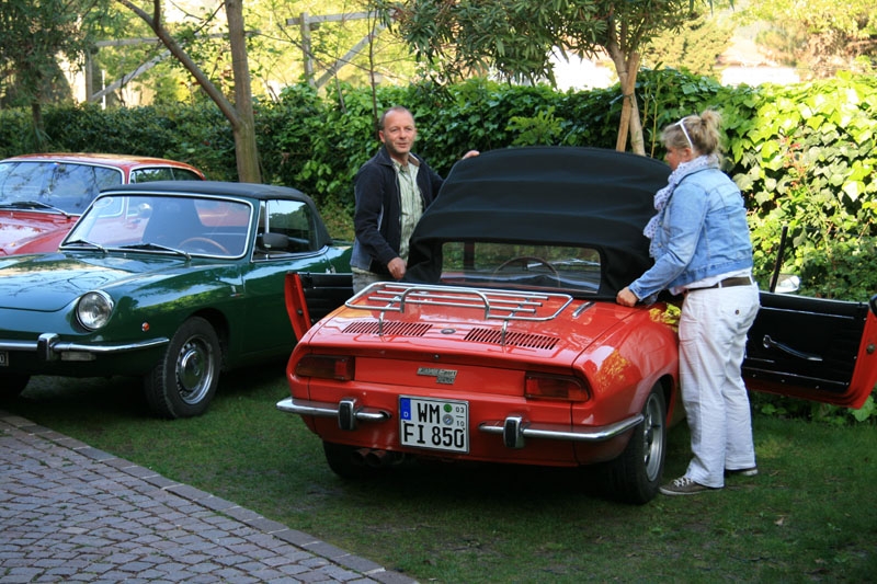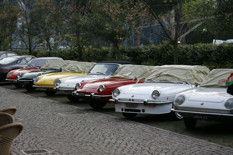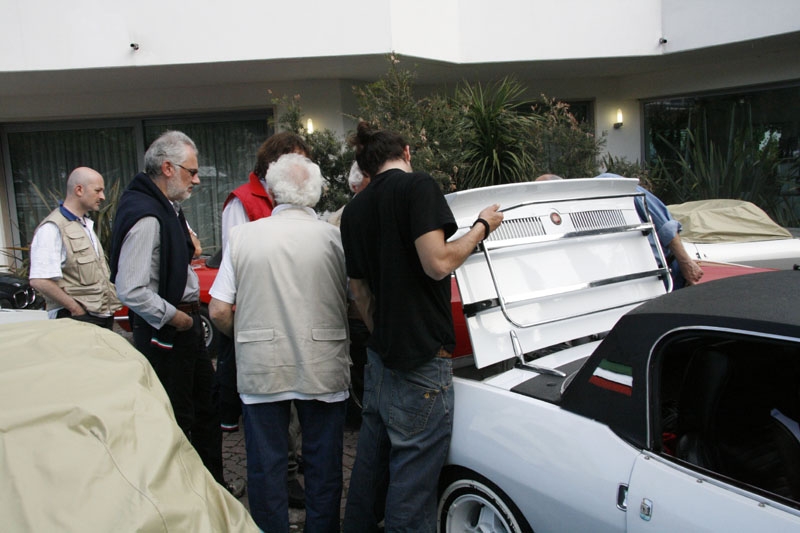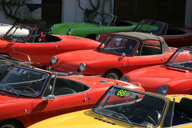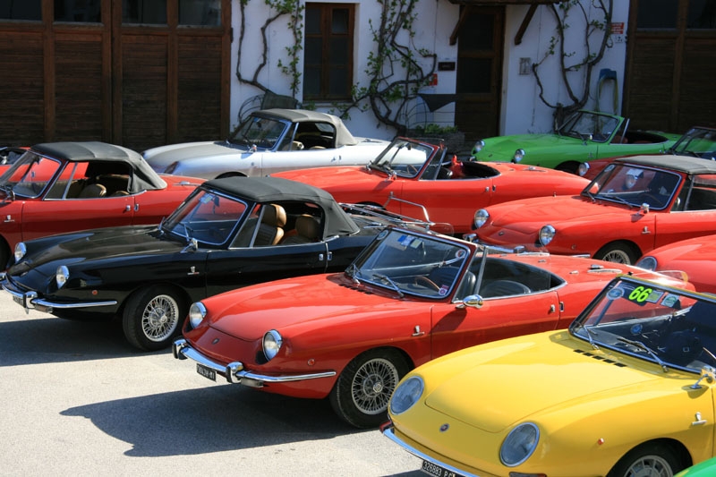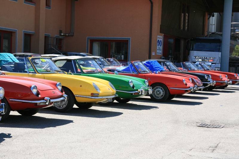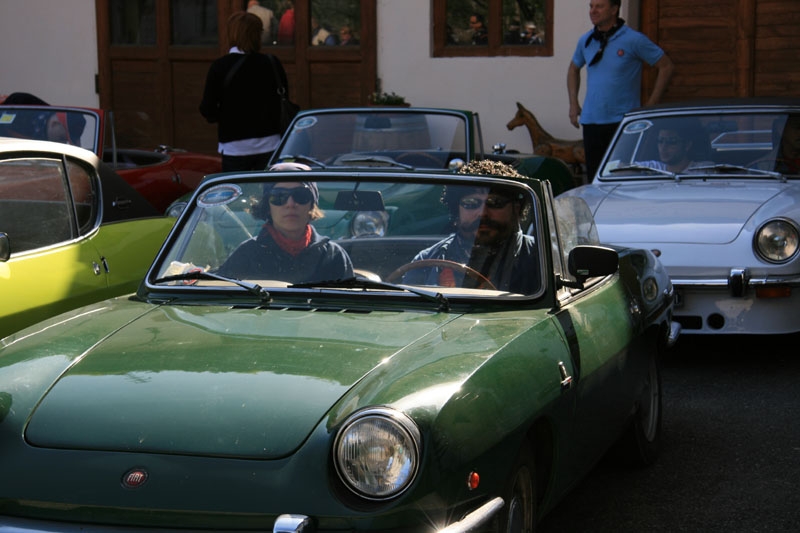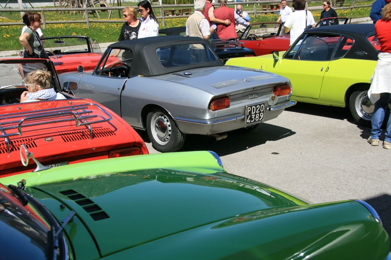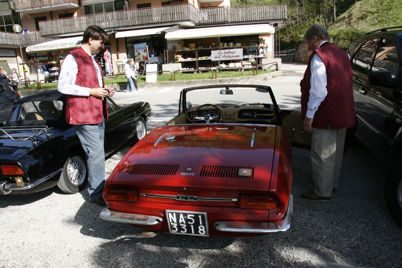Il meteo ha voluto darci una mano per consentirci di festeggiare il nostro anniversario nelle migliori condizioni: quindi, sotto il sole ed uno splendido cielo azzurro, le verdi vallate trentine, costeggiate da cime ancora bianche di neve, sono state solcate dal variopinto serpentone di auto partecipanti che ha raggiunto la ragguardevole cifra di 37 equipaggi: in verità non tutte erano 850 spider: vi erano infatti tre auto moderne a cui si aggiungevano un’Alfa Romeo, una Siata, una 128 ed un paio di Barchetta; il resto era una lunga e colorata scia di spider con qualche debuttante ed alcuni graditi ritorni: per la prima volta si è avvicinato al Club il veneto Fabio Mazzari con la sua seconda serie rossa mentre, parlando di soci, a Riva del Garda c’è stato il debutto ufficiale del milanese Calogero Latino che, in compagnia del nipote Michele, si è presentato a bordo di una seconda serie bianca alquanto elaborata nella carrozzeria e negli interni; per quanto riguarda i graditi ritorni ci riferiamo ai due equipaggi romani che da tempo non presenziavano alle nostre manifestazioni: Alessandro Benedini e papà su CL bordeaux, assenti dal 2003, ed i coniugi Alfredo e Carmela Anzini su “sport spider” nella classica livrea rossa; è stato però l’esordio anche per la nuova seconda serie di Davide Sargentini che, dopo avere sospeso il restauro della propria rossa Racer Convertibile, si è presentato a bordo di un magnifico esemplare di colore verde chiaro con interni rossi che ha suscitato il plauso dei partecipanti; presenti anche due equipaggi toscani e due marchigiani oltre ai soliti habitué “nordici”; i palermitani Gaetano e Piera Tarantino, che di solito si assicurano di diritto la qualifica di equipaggio proveniente da più lontano, per il secondo anno consecutivo si sono visti scippare il titolo da Chizuko Uchida, arrivata dal Giappone per festeggiare con noi il nostro ventesimo compleanno: e parlando di stranieri, citiamo anche una coppia di tedeschi che si sono aggregati a noi per una giornata: della loro spider, con qualche piccola licenza che i germanici spesso si concedono, abbiamo tutti invidiato la targa “FI 850”: infatti la legislazione locale permette di personalizzarla, cosa che da noi non è possibile… peccato! A chi non piacerebbe sfoggiare il numero 850 sulla targa della propria auto??? Un plauso anche a due coppie di soci: Ugo e Gianna Bacchi che, non potendo essere presenti per motivi familiari, hanno fatto una volata (da Firenze) domenica per presenziare almeno al pranzo finale e Carlo e Paola Longobardi che avevano già prenotato un viaggio in Egitto che hanno disdetto perché volevano a partecipare assolutamente al nostro incontro. E un bravo anche alle nostre