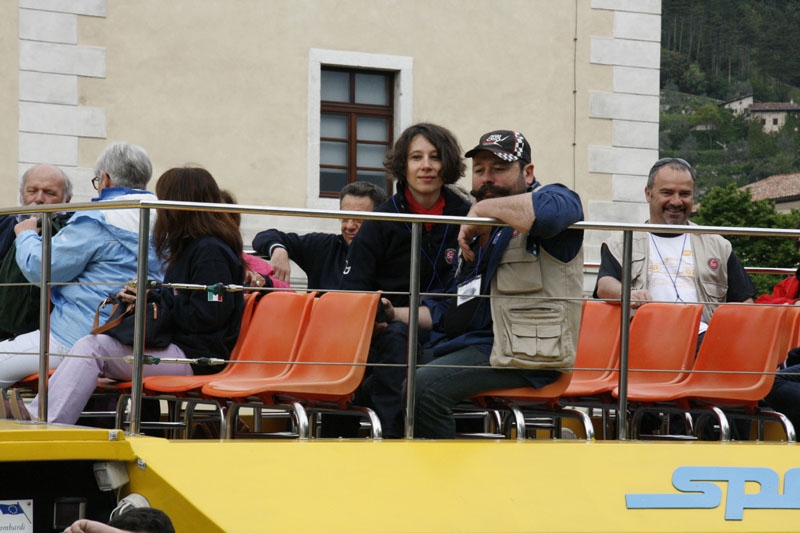 Siamo così giunti alla domenica che ci ha accolto con un cielo grigio ed un brusco abbassamento della temperatura: siamo saliti sul battello per la gita a Limone sul Garda e i più lesti hanno preso posto sotto coperta: chi ha viaggiato sul ponte superiore ha battuto un po i denti ma ha potuto ammirare lo splendore del lago e della strada gardesana, costruita in epoca fascista: fino ad allora, infatti, la località era raggiungibile solo via lago o attraverso impervi sentieri; sopra al tracciato attuale si trova incastonato nei monti un vecchio camminamento di epoca asburgica, oggi transitabile a piedi oppure in mountain bike; bellissime anche le antiche limonaie, spesso costruite a picco sul lago. Una volta sbarcati ci siamo sparpagliati per le vie del borgo per shopping e visita del centro. Dopo un’oretta e mezzo siamo rientrati a Riva per il pranzo conclusivo mentre qualche gocciolina di pioggia cominciava ad impensierirci; fortunatamente il tanto temuto acquazzone non è arrivato e, una volta ripartiti verso casa, siamo tutti riusciti a viaggiare senza grossi problemi. Un grosso grazie agli organizzatori che, è bene sottolinearlo, ci hanno offerto un raduno eccezionale a prezzi da saldo, e a tutti coloro che li hanno supportati ed hanno reso possibile questo bellissimo evento.